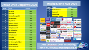 Wat hebben we weer genoten! Op 7 maart werd de Dorpskwis gespeeld en op 28 maart vierden we een feestelijke slotavond met veel winnaars. Tijdens deze avond zijn al een aantal antwoorden voorbij gekomen, maar nu is het zover: het volledige antwoordenboek staat online.